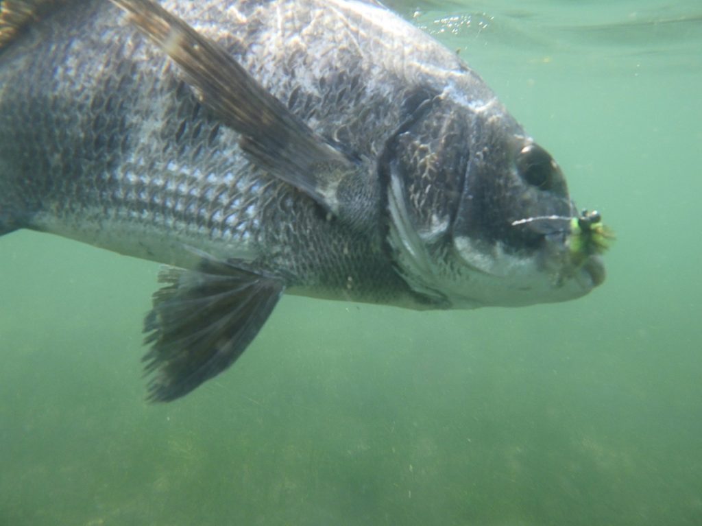 でもゼータク言っちゃいけません。1尾C&Rできただけでも満足度はめちゃくちゃ高いんです。だって、ポイント選択に始まり、クロダイがフラットに入ってくるコースの予測、ポジション取り、キャストコースの確保、クロダイを発見してからのアプローチ、プレゼンテーション、リトリーブ、フッキング、ファイト、キャッチ&リリースまで、すべて自己完結できたんですから。